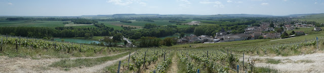 | A panoramic view of the Marne valley, Margeuil-sur-Ay, and the vineyards. |